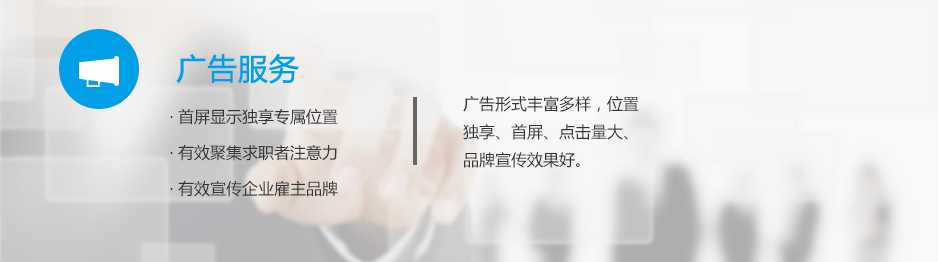 單獨(dú)購(gòu)買廣告服務(wù)的客戶,可享受在廣告服務(wù)期內(nèi)發(fā)布職位、搜索專業(yè)人才庫(kù)、下載簡(jiǎn)歷、邀約面試的增值服務(wù)。